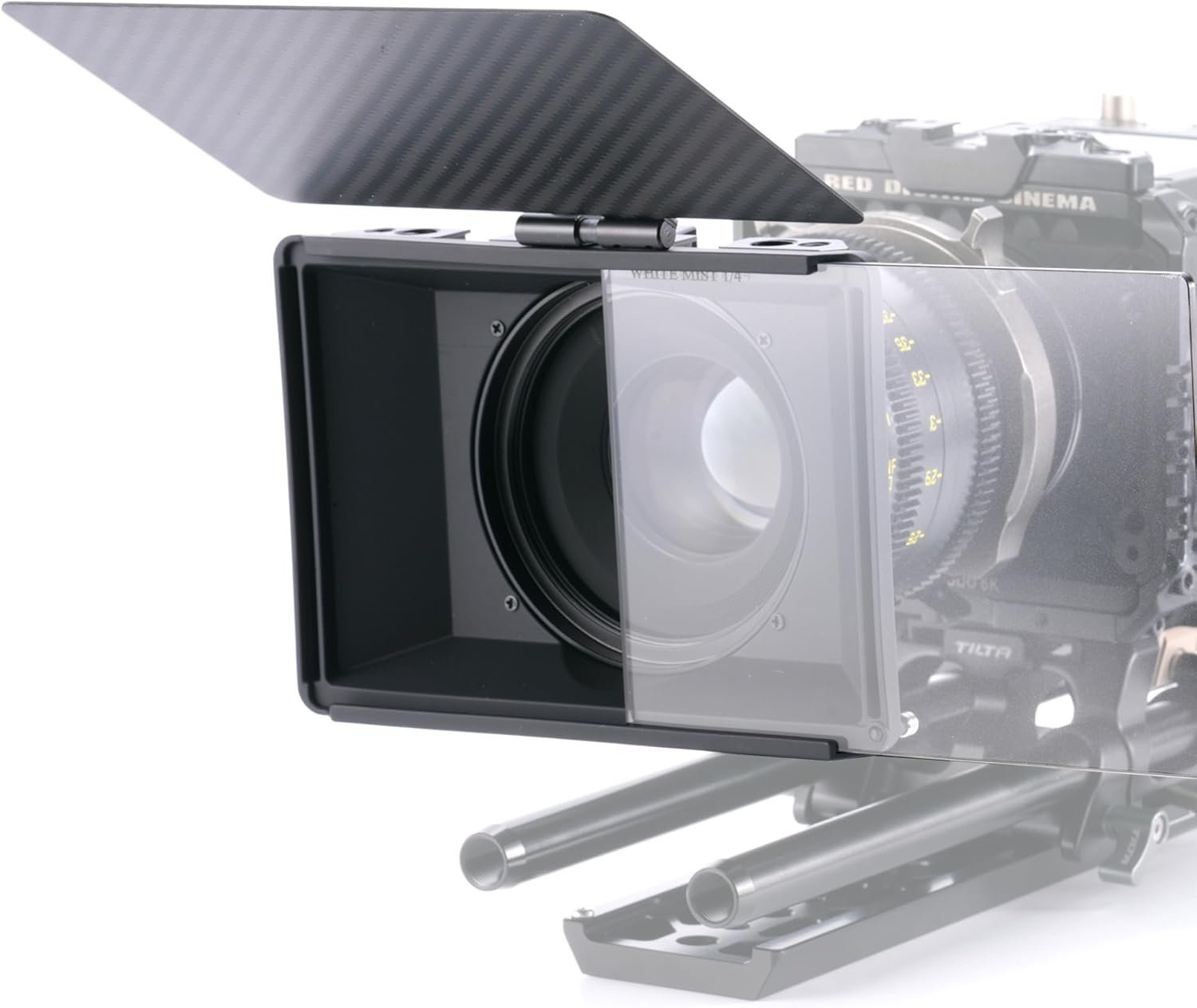 The kit includes a 15mm adapter that attaches to the bottom of the matte box, providing support for the weight of the matte box and lens stability.